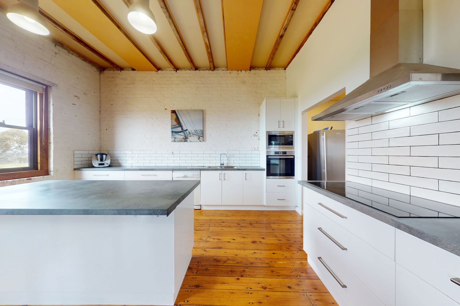 One of the most striking things about living in the cellars is the sheer thermal mass of the building. Short shifts in temperature outside are simply not even felt internally. The hydronic heating keeps a steady and comfortable temperature throughout the cooler parts of winter, while upstairs the split systems keep any prolonged mid-summer heat at bay. For the majority of the year, there is no requirement for heating or cooling at all.