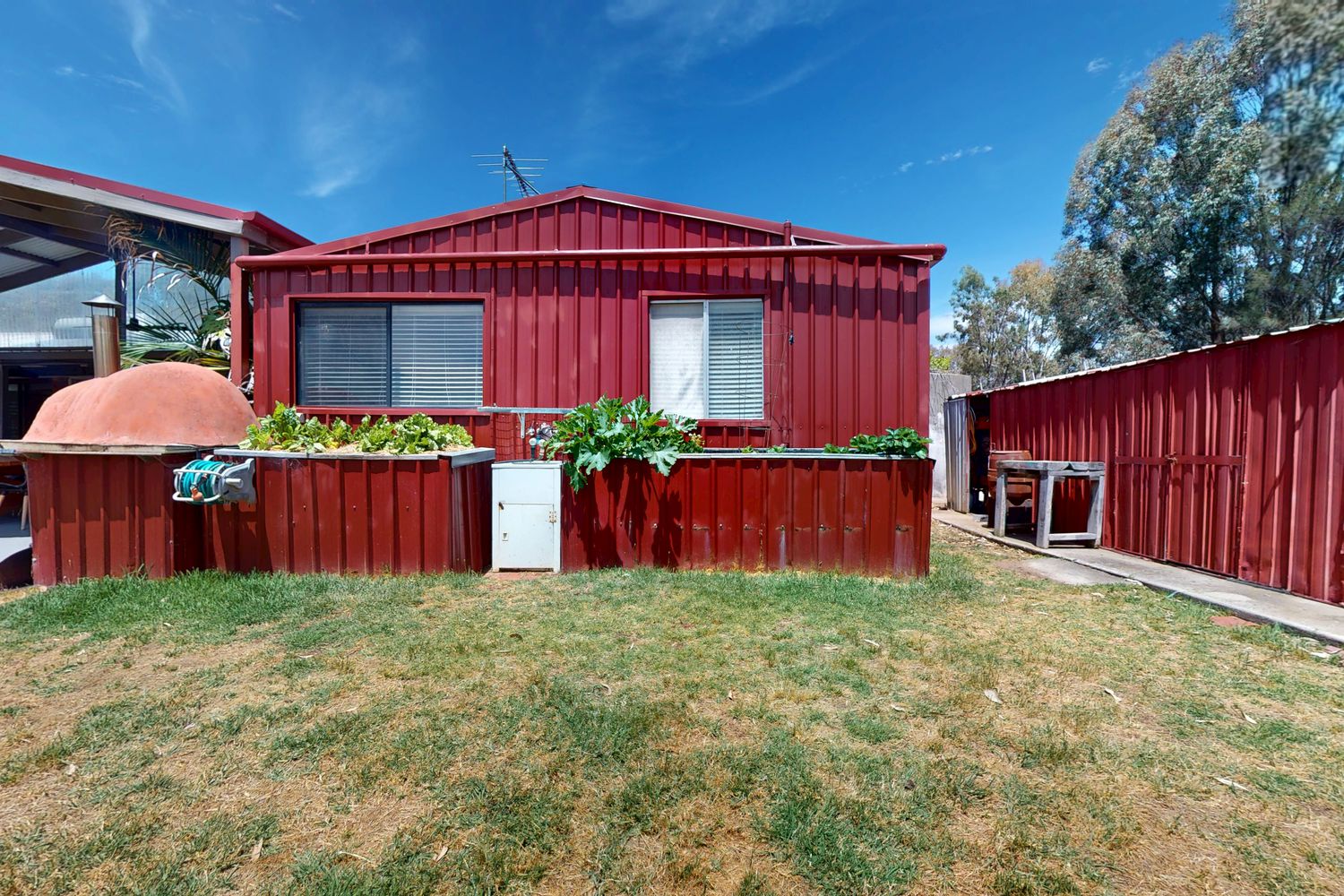 The water tanks 1 x 125,000lt and 2 x 20,000lt, and raised garden beds provide the ease of growing your own produce,the property also boast a thriving orchard, producing oranges, lemons, apples, mulberrys and apricots, providing eco-friendly and cost-effective living options. Gardens are fully irrigated.