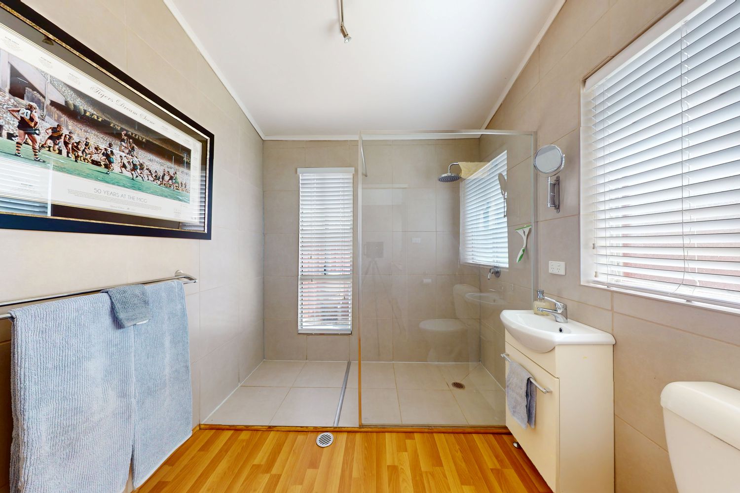 Your comfort is assured with reverse cycle split systems throughout the home and ceiling fans, with the